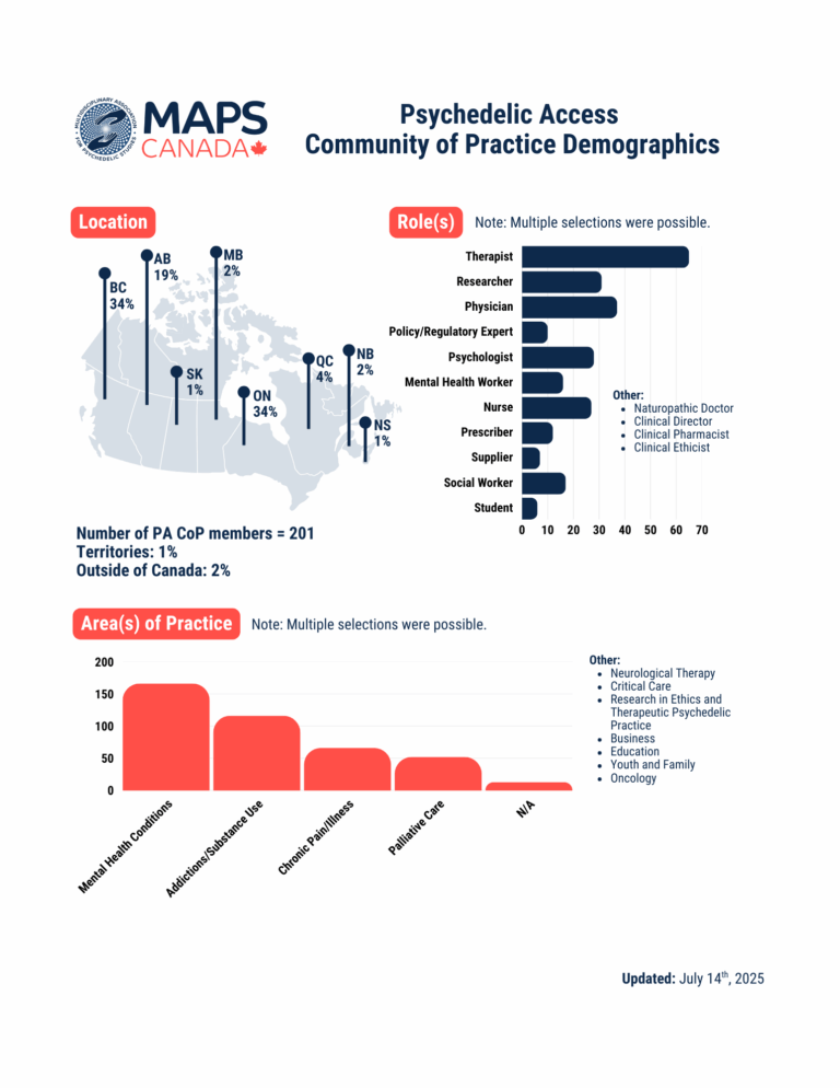 MAPS Canada is building a community of practice to bring together professionals interested in advancing access to psychedelics in compliance with the law. Join us!