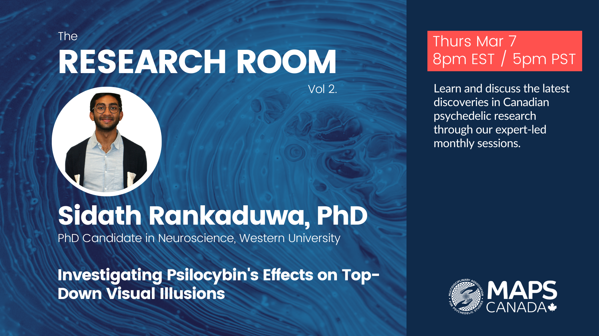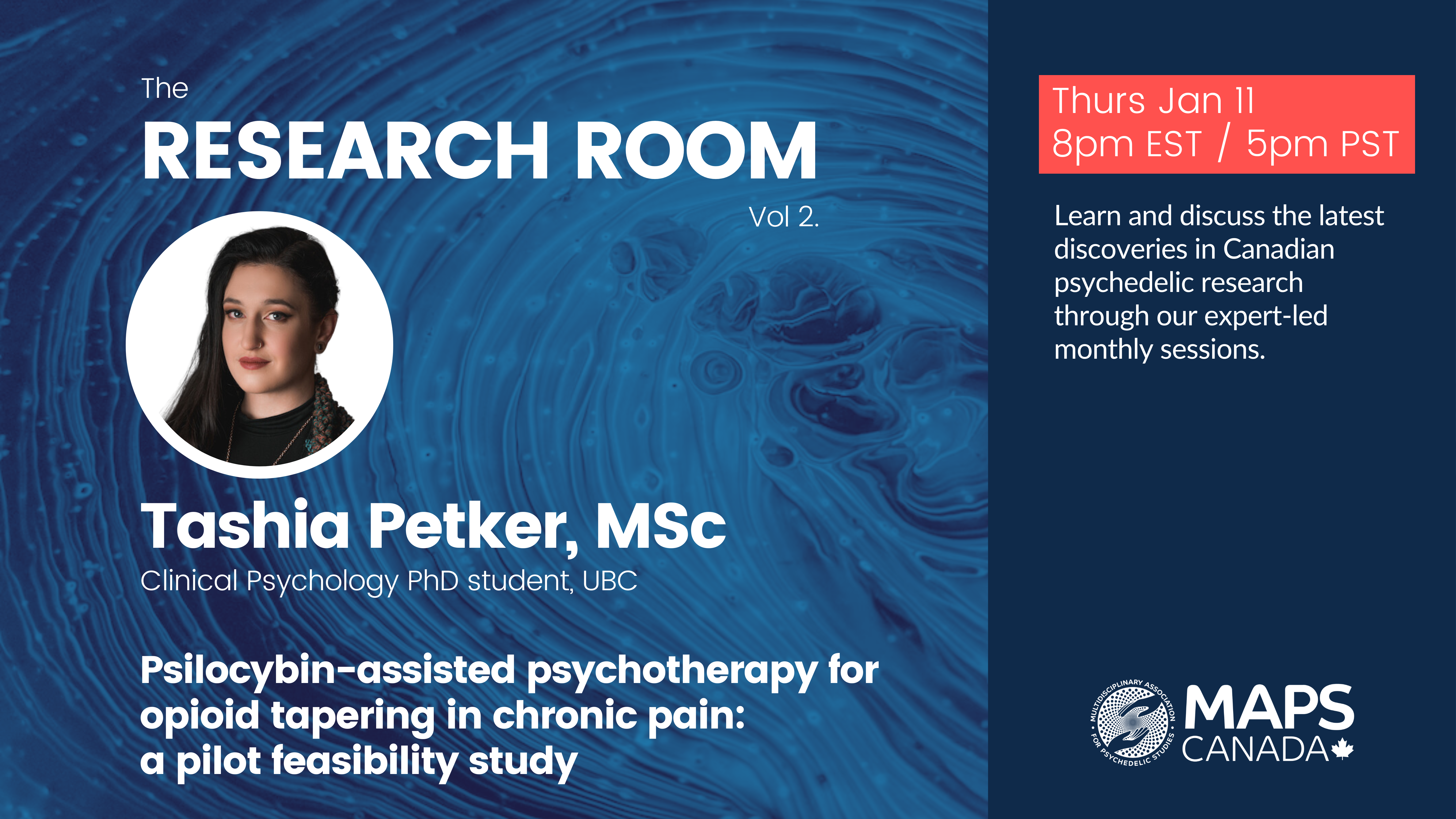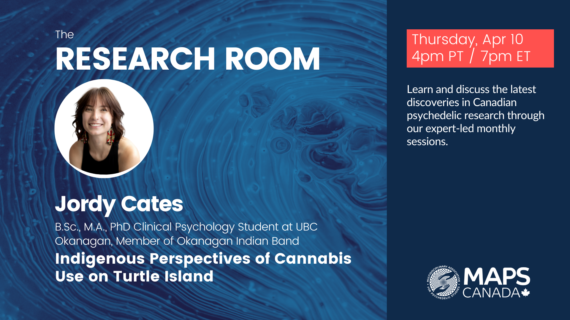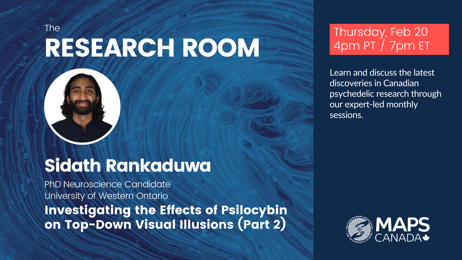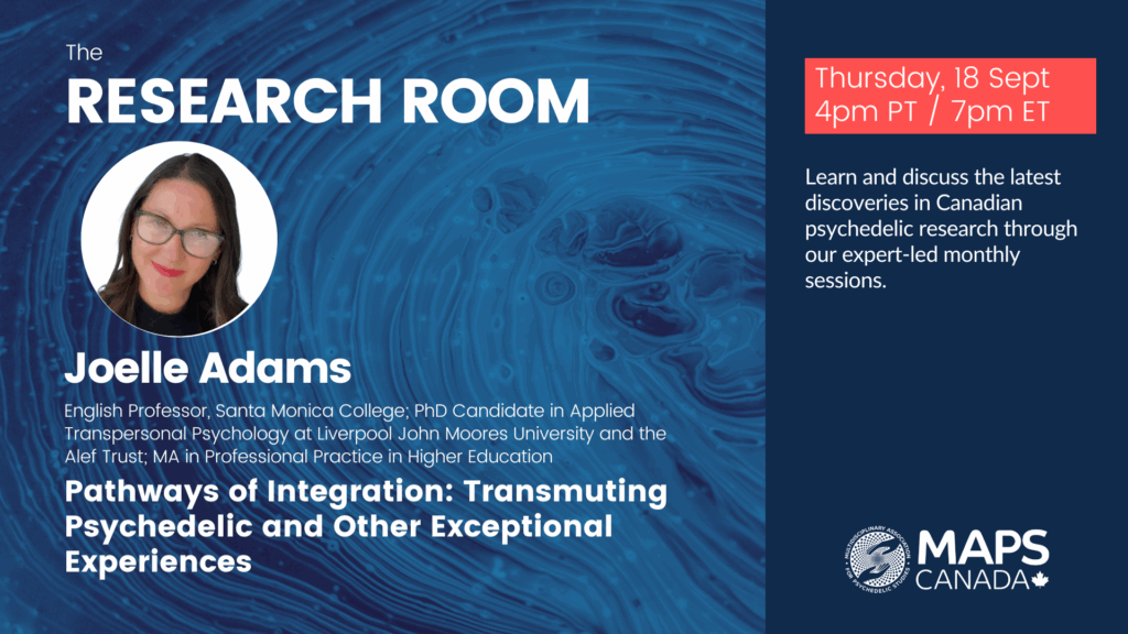 The MAPS Canada Research Room is a monthly webinar series dedicated to showcasing cutting-edge Canadian research across diverse disciplines within the burgeoning field of psychedelic studies. Our mission is to democratize access to psychedelic science, and fostering inclusivity through knowledge translation and dissemination of academic knowledge in a more accessible manner.